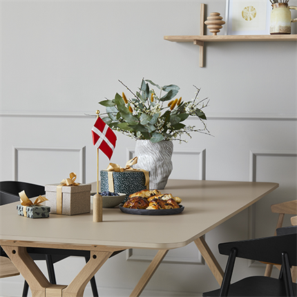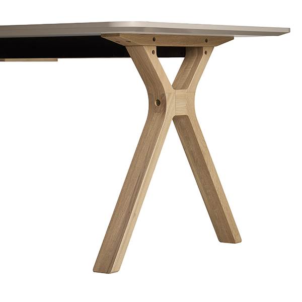 Understellet er udført i hvidpigmenteret eg, som tilfører bordet et lyst og nordisk udtryk, mens bordpladen i Fenix-laminat understreger det moderne design. Laminatoverfladen er både slidstærk og praktisk og gør bordet let at rengøre i dagligdagen – perfekt til en travl hverdag, hvor spisebordet ofte er samlingspunkt for både måltider, lektier og hyggelige stunder.
