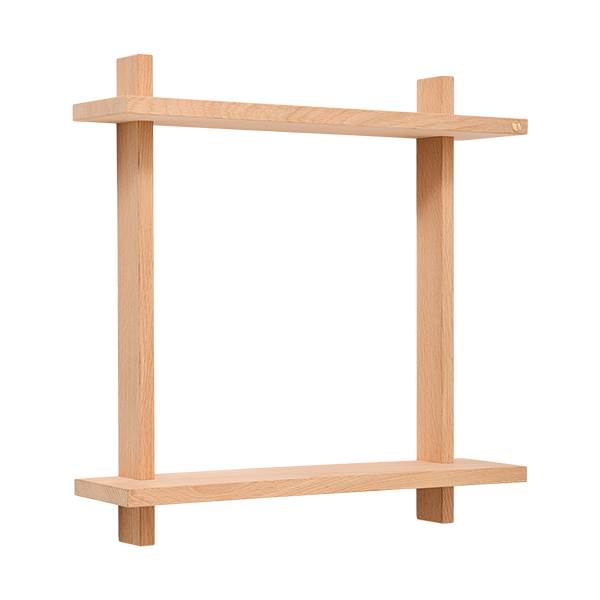 Treat double hylde er en elegant opbevaringsløsning, der kombinerer funktionalitet med nordisk design. Denne variant består af to hylder i massivt egetræ og leveres samlet. Hylderne måler henholdsvis B: 34 x D: 12 x H: 34 cm (lille) og B: 50 x D: 12 x H: 50 cm (stor), hvilket giver en harmonisk og praktisk opstilling.