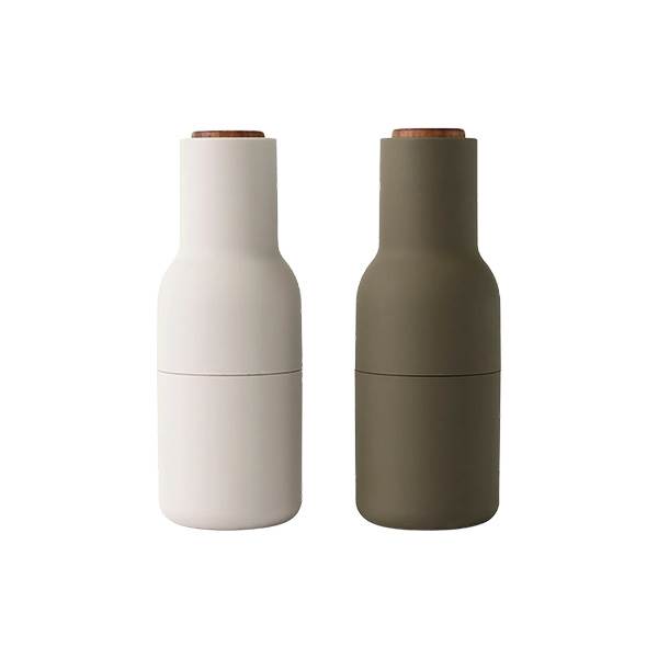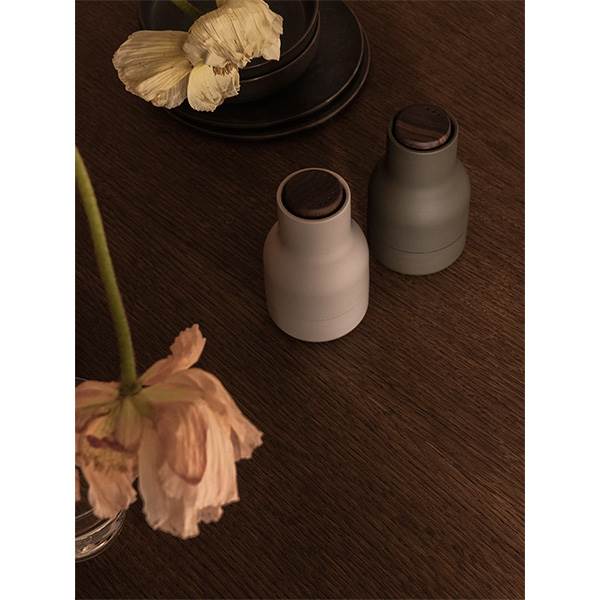 Kværnene er formgivet som flasker, der ligger behageligt i hånden, og kombinerer funktionalitet med et tidløst design, som bidrager til en raffineret borddækning og optimal krydring af måltider.
