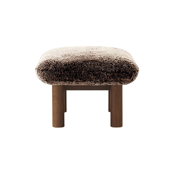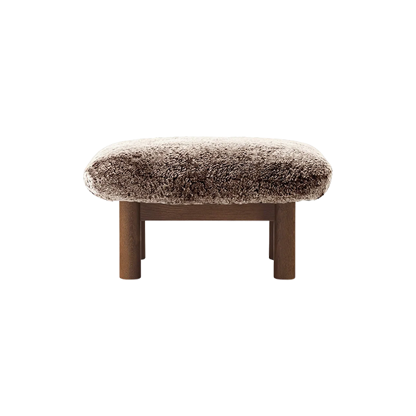 Brasilia fodskammel fra Audo Copenhagen, designet af Anderssen & Voll, kombinerer dansk håndværkstradition med inspiration fra brasiliansk modernisme. Fodskammelen har robuste, cylindriske ben og blødt buede hynder, hvilket giver både stabilitet og komfort. Udført i massiv mørk eg, koldhærdet skum og fåreskind, tilføjer den både varme og luksus til indretningen.