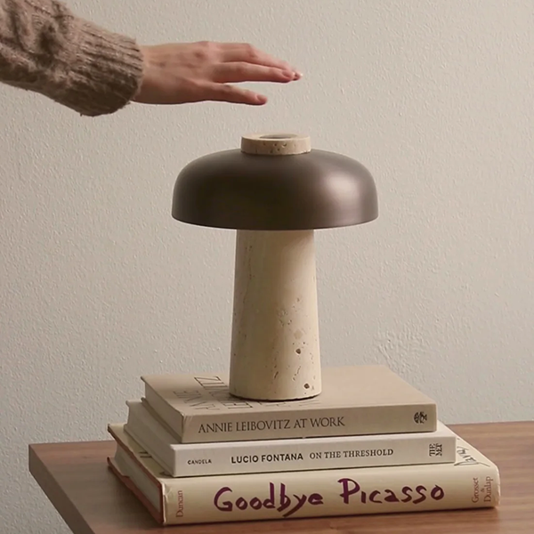Reverse bordlampe fra Audo Copenhagen, designet af Aleksandar Lazic, kombinerer æstetik og funktionalitet på en elegant måde. Lampen har en konisk travertinbase og en buet, bronzefarvet aluminiumsskærm, der skaber et harmonisk og afbalanceret udtryk. Lyset spredes jævnt over den rå sten, hvilket fremhæver dens naturlige tekstur og farvespil. Lampen er udstyret med en lysdæmper, så du kan justere lysintensiteten, og den anvender en dæmpet-til-varm LED-lyskilde, hvilket giver både varmt og behageligt lys. Med en højde på 30 cm og diameter på 24 cm kan lampen placeres fleksibelt i hjemmet – på natbordet, skænken eller som dekorativ belysning i stuen. Farverne brun og beige gør den let at integrere i forskellige indretninger, samtidig med at dens skulpturelle design tilføjer et karakterfuldt element til rummet. Highlights: Elegant og afbalanceret design inspireret af italienske marmorborde fra 1970’erne. Konisk travertinbase og buet aluminiumsskærm. Jævnt spredt lys, der fremhæver stenens naturlige ufuldkommenheder. Lysdæmper til justering af lysintensitet. Dæmpet-til-varm LED-lyskilde. Fleksibel placering i hjemmet – natbord, skænk, stue mv. Stilfuld kombination af brun og beige.