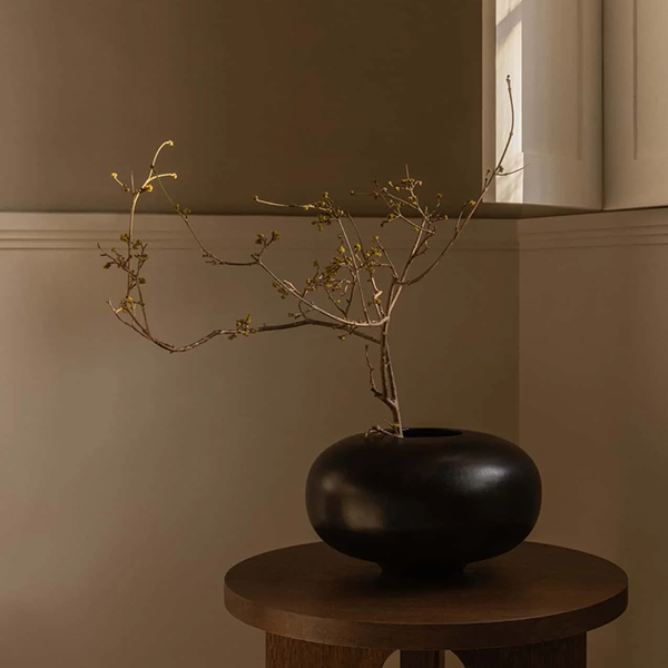 Med sine bløde linjer og sin runde, skulpturelle form fungerer Surround Vase både som en kunstnerisk dekoration i sig selv og som en elegant base for enkelte blomsterstilke. Uanset om den står alene eller med en minimalistisk buket, tilfører den varme, karakter og organisk æstetik til indretningen.