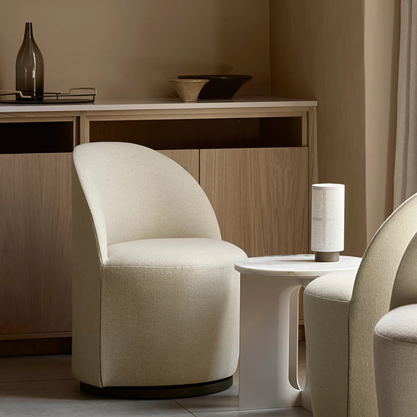 Tearoom Club-stolen fra Audo Copenhagen, designet af Nick Ross, er et studie i minimalistisk luksus med fokus på komfort og funktionalitet. Stolen måler H: 78 x B: 60 x D: 58 cm med en siddehøjde på 47 cm og er betrukket med det bløde Logan Jasmine stof i lys beige, der giver en elegant og tidløs finish.