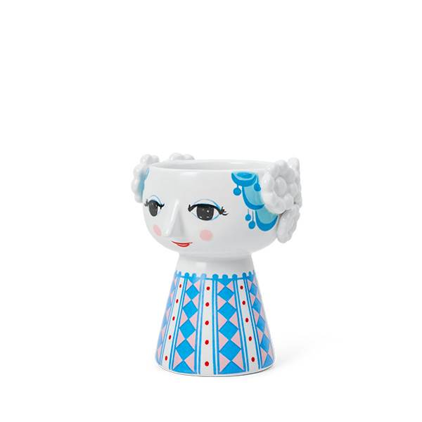 Udfold din unikke personlighed og lad kreativiteten stråle med Bjørn Wiinblads Eva. Med sit varme smil, rødmende kinder og farverige dekorationer indfanger Eva på alle måder essensen af Bjørn Wiinblad som både person og kunstner – selv i sin form som lysestage. Denne Eva-lysestage, som måler 9,5 cm i højden, er primært udført i pink med detaljer i lyseblå og grøn, hvilket giver den et friskt og levende udtryk. Når et lys tændes i stagen, intensiveres dens farver og tilføjer et ekstra strejf af farve til hverdagen. Lysestagen er fremstillet af blankglaseret keramik med farvede dekorationer og er inspireret af Bjørn Wiinblads originale Eva-univers, hvor brede hoveder med blomsterdekorationer og en kegleformet krop udgjorde grundelementerne. Ansigtets mandelformede øjne og spidse næse er tro mod Wiinblads oprindelige stil, mens det farverige kjolemønster repræsenterer en nyfortolkning af hans klassiske illustrationer fra arkiverne.