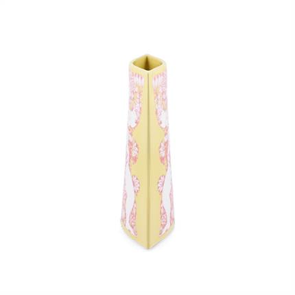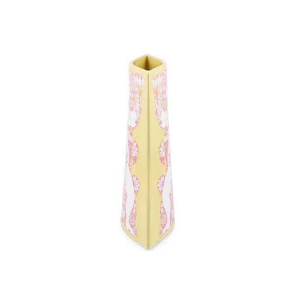 Vasen på 22 cm kombinerer en frisk gul tone med dekorative pink detaljer, der elegant omkranser den feminine figur. De ophøjede decals skaber en taktil overflade, som giver vasen et unikt kunstnerisk udtryk og tilføjer dybde til den blankglaserede keramik. Resultatet er en vase, der både fungerer som en brugbar genstand og et dekorativt kunstobjekt i sig selv.