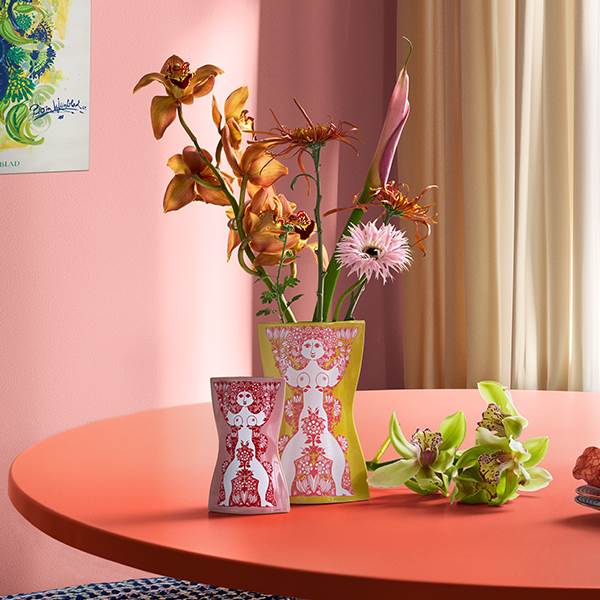 Nina-vasen løfter rummet med sin poetiske energi, stærke grafiske identitet og optimistiske farver. Den kan stå smukt alene som skulptur eller bruges til at fremhæve en buket med lige så meget personlighed.