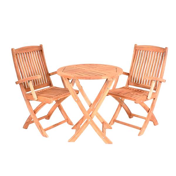 Utroligt flot cafésæt i massiv teak, som er perfekt til terrassen eller altanen. Møblerne er udført i Grade B teaktræ, hvilket giver dem en flot gyldenbrun farve. Stolene såvel som bordet kan nemt foldes sammen og opbevares på lidt plads i skuret om vinteren, hvilket sikrer at møblerne holder sig pæne i mange somre. For optimal siddekomfort, kan der tilkøbes havehynder til sættet.