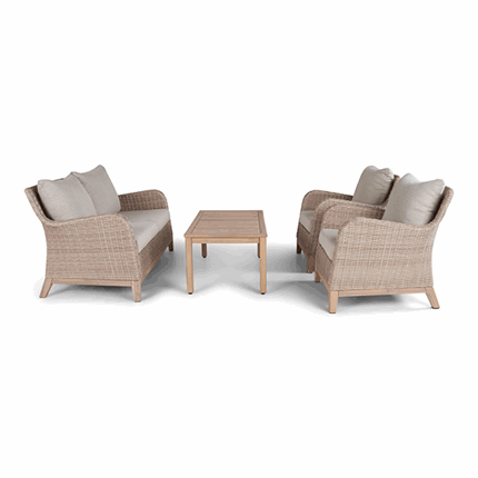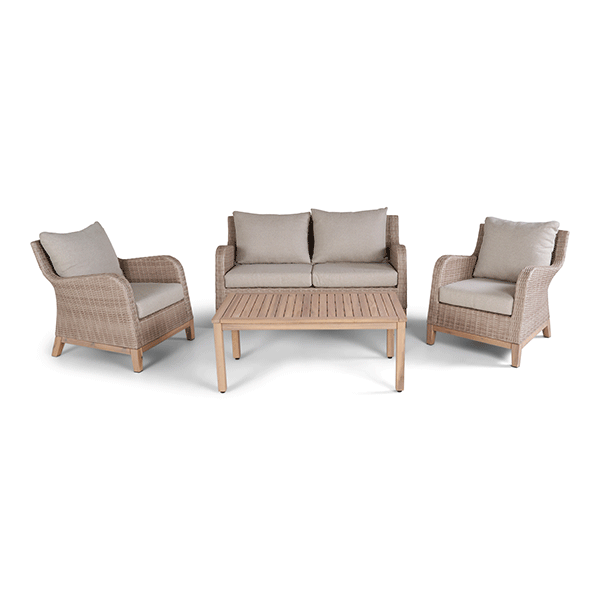 Brisehavn loungesæt er et flot og indbydende loungesæt, der skaber de perfekte rammer for afslapning på terrassen, altanen eller i haven. Med sit elegante udtryk i beige rattan og naturlige trædetaljer passer sættet smukt ind i både moderne og klassiske uderum.