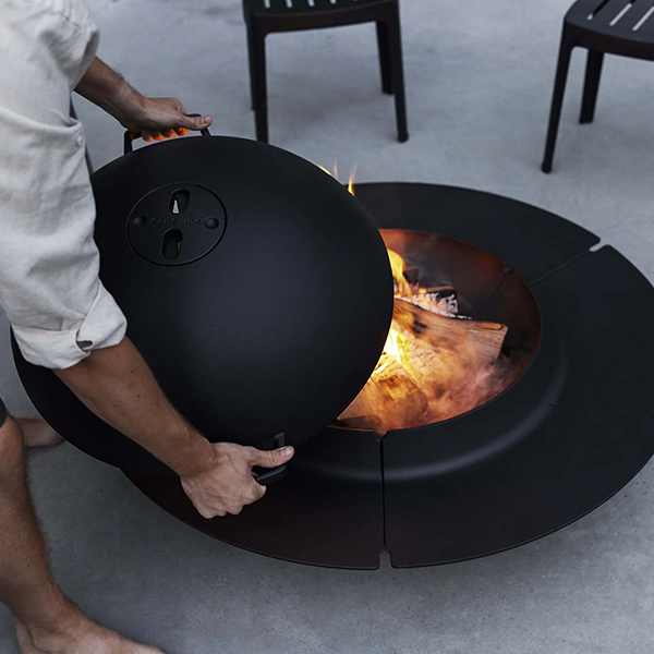 Ember låget har flere praktiske funktioner – det holder effektivt på varmen, når bålfadet ikke er i brug, og fungerer samtidig som gnistfanger, så du undgår at blive ramt af gløder og små gnister, mens ilden brænder.