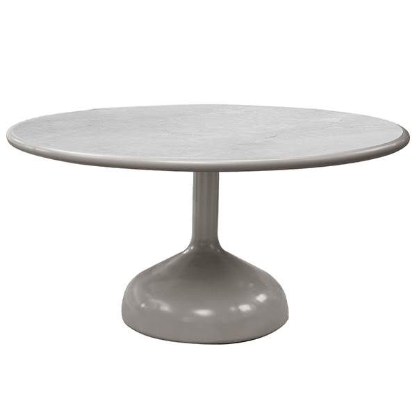 Bordet har en diameter på 147 cm og en højde på 70 cm, hvilket giver god plads til flere personer og gør det ideelt til både terrasse og have. Det solide understel i taupe sikrer stabilitet og tilfører samtidig et moderne og let udtryk.