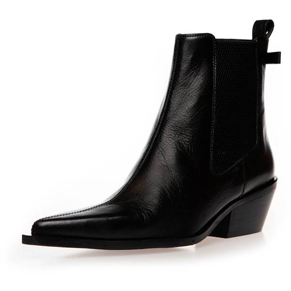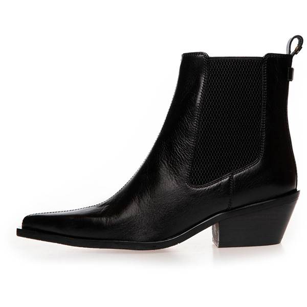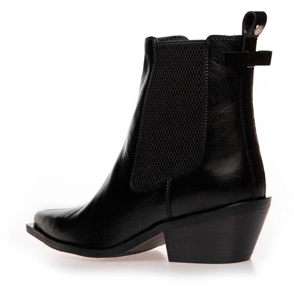 En stilfuld og feminin Chelsea-støvle med spids snude og markant hæl. Det brede elastik i siderne sikrer nem af- og påtagning og understreger det klassiske design, mens den diskrete sløjfedetalje bagpå tilfører et elegant og charmerende præg.