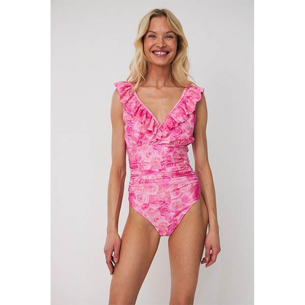 Agnescras Swimsuit er designet til at fremhæve silhuetten gennem en elegant slå-om-effekt, fine flæsedetaljer samt en sofistikeret dyb rygudskæring. Den smigrende V-udskæring og det let draperede snit skaber et feminint udtryk, der forener selvsikkerhed med høj komfort. Badedragten repræsenterer en harmonisk balance mellem æstetik og funktionalitet og er velegnet til både stranddage og ophold ved poolen, hvor ønsket er at føle sig stærk, veltilpas og stilfuld.