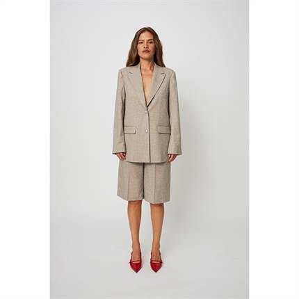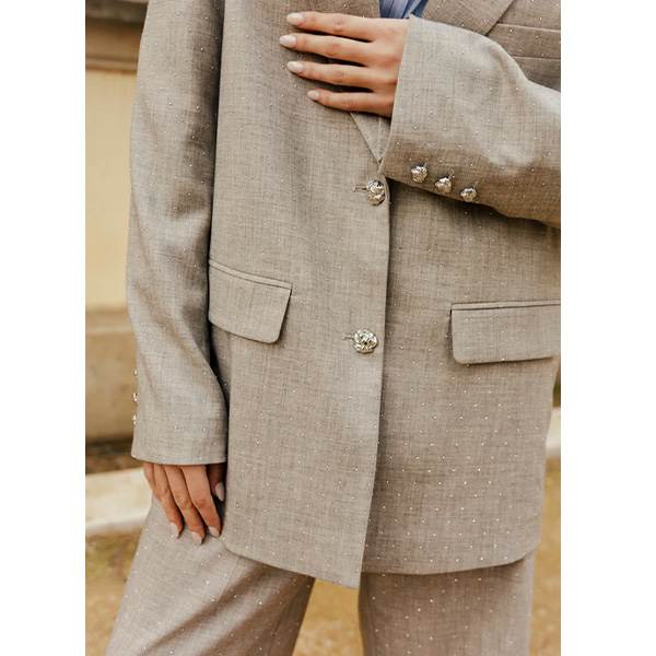 Dianacras Blazer er et uundværligt element i garderoben, hvor klassisk skrædderarbejde forenes med et subtilt strejf af glamour. Blazeren er designet med en oversized pasform, der skaber et afslappet og moderne udtryk, og er fuldendt med elegante sølvfarvede knapper samt fine rhinsten, som løfter helhedsindtrykket. Den kan bæres som del af et komplet sæt med de matchende Vilenacras Shorts eller styles over et eksisterende outfit for et sikkert og stilfuldt udtryk.