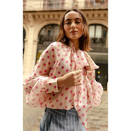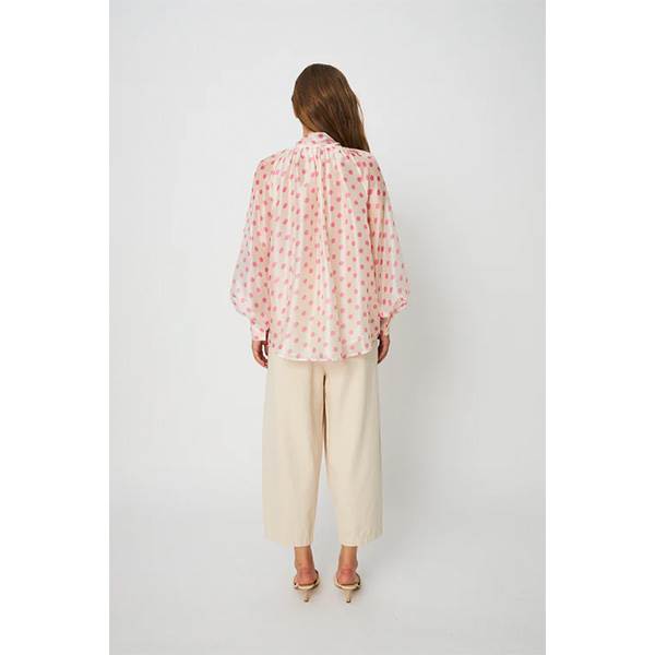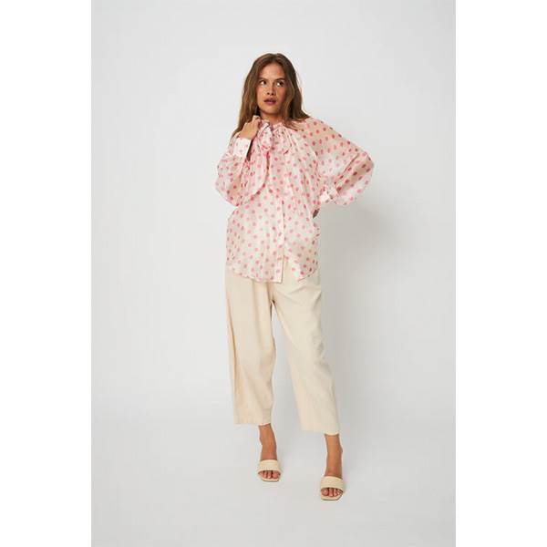 Ethelcras Blouse fremstår som et ideelt valg, når man ønsker at tilføre sin garderobe et strejf af vintage-inspireret elegance. Det lette og let transparente materiale sikrer en luftig silhuet med optimal bevægelsesfrihed, mens de bløde, voluminøse ærmer afsluttes med høje manchetter og knaplukning, hvilket giver et eksklusivt udtryk. Den markante, oversized sløjfe ved halsudskæringen fungerer som et stilfuldt statement, der kan styles både feminint og kraftfuldt – velegnet til såvel professionelle sammenhænge som sociale arrangementer.