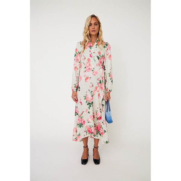 Laracras Dress er en kjole, der forener raffinement med et livligt og feminint udtryk. Den lette, lange slå-om-silhuet udstråler tidløs elegance, mens flæsedetaljerne langs kanten tilfører et subtilt og legende præg. Det aftagelige bindebælte i taljen giver mulighed for at fremhæve en flatterende silhuet, og de lange ærmer skaber en harmonisk balance, som gør kjolen velegnet til både hverdagsbrug og særlige lejligheder.