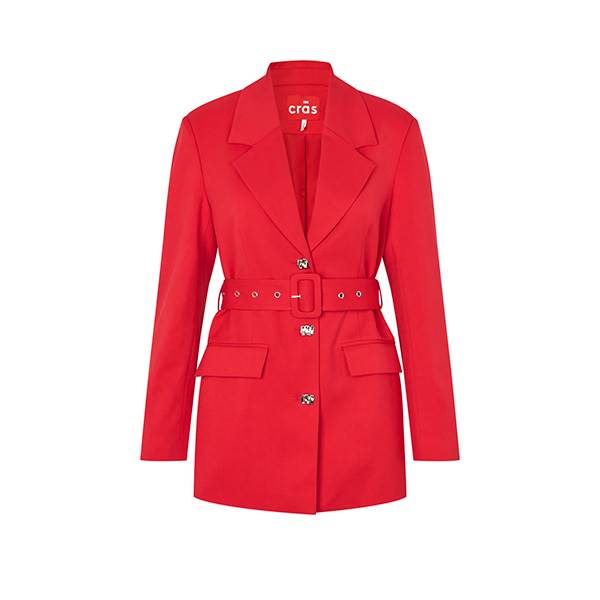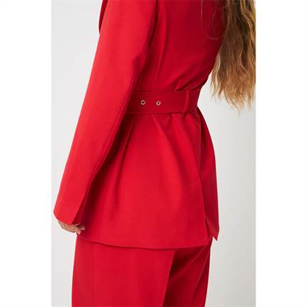 Mancycras Blazer repræsenterer selvsikker elegance i sin reneste form. Den præcise, men stadig feminine silhuet kombineret med den intense røde farve skaber et markant statement, der løfter ethvert outfit. Det justerbare bælte i taljen fremhæver figuren og tilføjer blazeren en elegant, figursyet pasform, mens det klassiske revers og den rene front sikrer et tidløst udtryk. Blazeren kan anvendes alene som en sofistikeret blazer-kjole eller kombineres med de matchende bukser for et fuldendt og kraftfuldt suit-look.