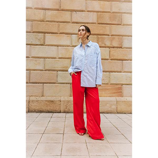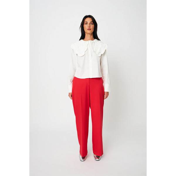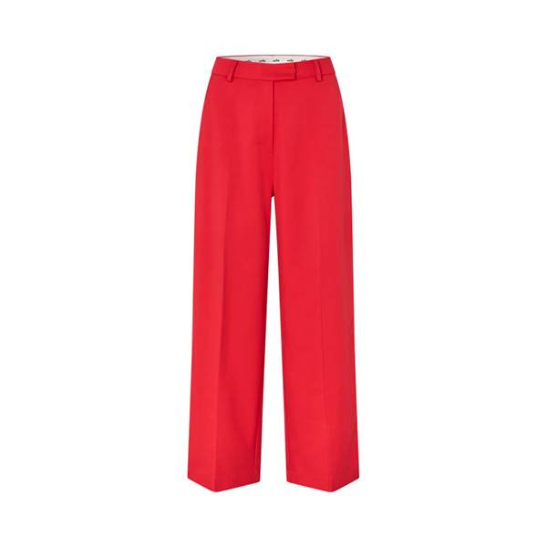 Mancycras Pants er designet til at tilføre garderoben et selvsikkert og sofistikeret præg. Den markante røde farve kombineret med brede ben og markante pressefolder skaber et elegant udtryk, der forener et moderne formsprog med et tidløst design. Bukserne er velegnede til både professionelle sammenhænge og festlige anledninger. De kan med fordel styles med en feminin skjorte eller en klassisk blazer for et harmonisk look, hvor styrke og personlig stil går hånd i hånd.