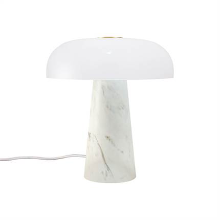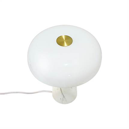 Glossy Mini er en elegant bordlampe, der forener en eksklusiv marmorbase med en top i børstet messing. Lampen er designet af den danske designer Maria Berntsen, som har haft til hensigt at skabe et minimalistisk, nordisk udtryk gennem anvendelsen af materialer af høj kvalitet, hvilket gør hver enkelt lampe unik. Navnet Glossy henviser til lampens karakteristiske, skinnende overflade. Den opalhvide glasskærm spreder et blødt og behageligt, diffust lys, hvilket gør lampen velegnet til placering på eksempelvis en reol i stuen eller på et skrivebord. Da marmor er et naturligt materiale, vil der kunne forekomme variationer i farve og åretegning fra lampe til lampe. Dette betragtes som en del af materialets naturlige og unikke karakter.