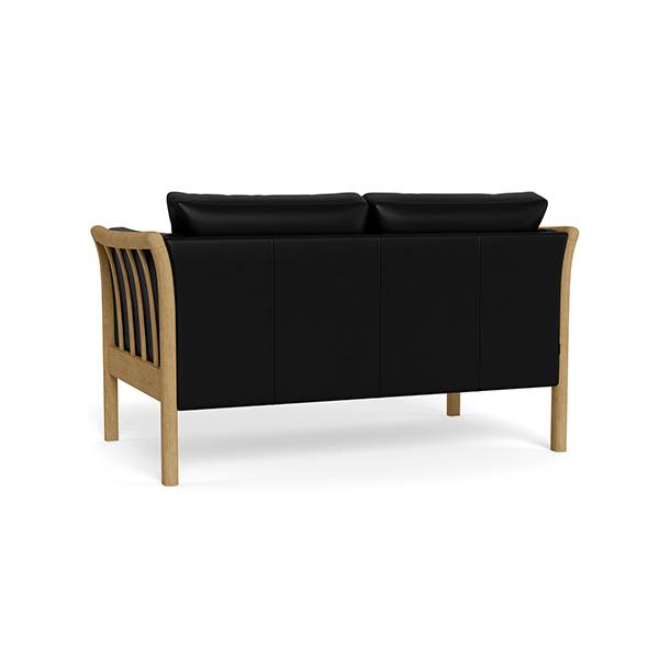 Dorte 2 personers lædersofa er en elegant løsning til mindre rum eller som supplement til Dorte 3 personers lædersofa. Sofaen måler B: 140 x D: 82 x H: 81 cm og har en siddedybde på 52 cm samt en siddehøjde på 45 cm. Gavlen er udført med tremmer i ubehandlet bøg eller ubehandlet eg (tillæg ved valg af eg), hvilket giver et tidløst og naturligt præg.