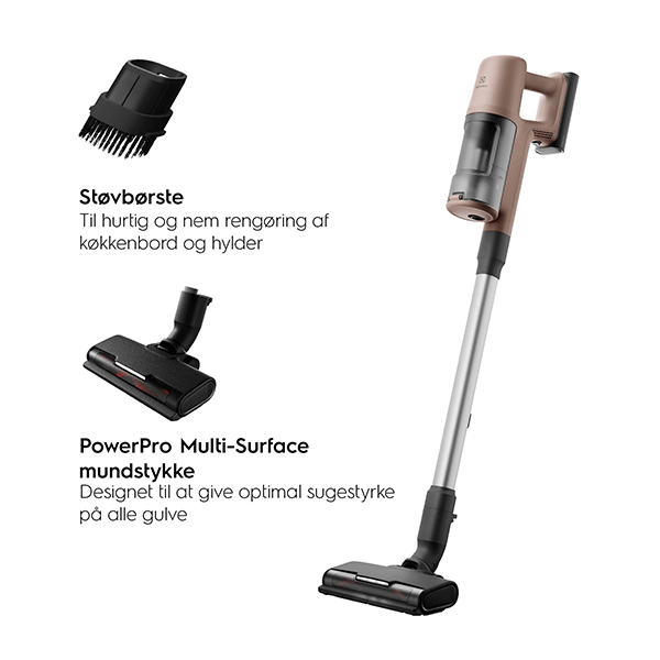 Electrolux 600 Animal er den ideelle ledningsfri støvsuger til hjem med kæledyr. Den kombinerer kraftfuld ydeevne, praktisk 2i1-funktionalitet og et bæredygtigt design, fremstillet af 51% genbrugsplast. Med LED-lys i mundstykket får du et klart overblik over støv og hår, selv i mørke hjørner, og den smarte hurtigudløser til børsterullen gør rengøringen af mundstykket nemmere end nogensinde.