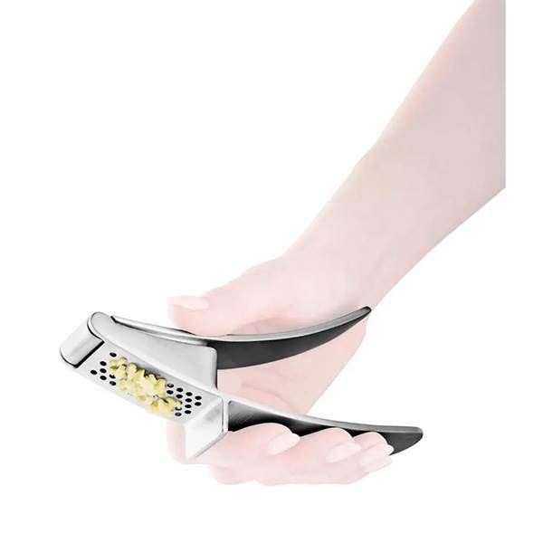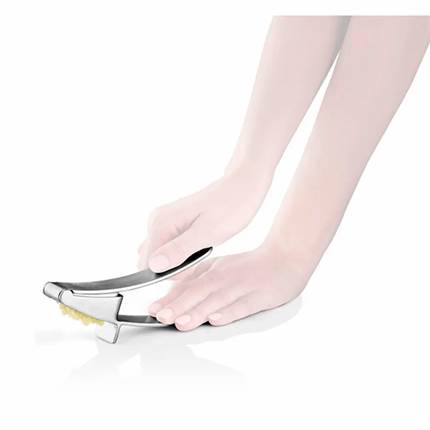 Denne hvidløgspresser gør det muligt at presse hvidløg hurtigt og uden anstrengelse. Den kan anvendes direkte i hånden eller placeres på bordet, hvor et let tryk på toppen er tilstrækkeligt. Det ergonomiske greb sikrer høj komfort og en jævn kraftfordeling, hvilket reducerer belastning og giver optimal kontrol.