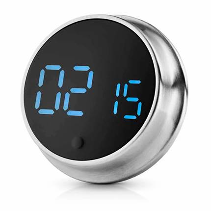 Den brugervenlige drejefunktion gør det muligt hurtigt og enkelt at indstille tiden med et enkelt twist. Timerens magnetiske bagside muliggør sikker placering på køleskabet eller andre metaloverflader, så den altid er let tilgængelig.