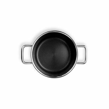 Gryden forener Eva Trios klassiske formsprog og anerkendte kvalitet med tidssvarende materialer og forbedrede funktioner. Indersiden er udstyret med et raffineret mønster, bestående af rustfrit stål øverst og en keramisk Slip-let®-belægning nederst. Denne kombination reducerer risikoen for, at maden brænder fast, samtidig med at belægningen er så slidstærk, at metalredskaber kan anvendes uden fare for beskadigelse.