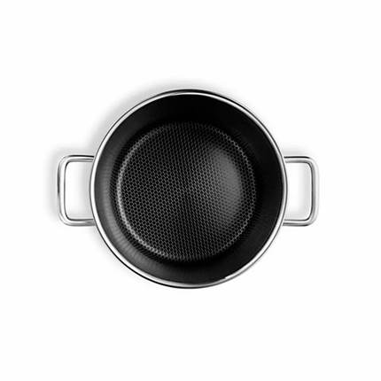 Korpus er fremstillet af 90% genanvendt post-consumer rustfrit stål samt 100% genanvendt post-consumer aluminium. Den avancerede Multi-layer 3-lags teknologi sikrer hurtig opvarmning, ensartet varmefordeling samt en robust yderside, der effektivt modstår slid.