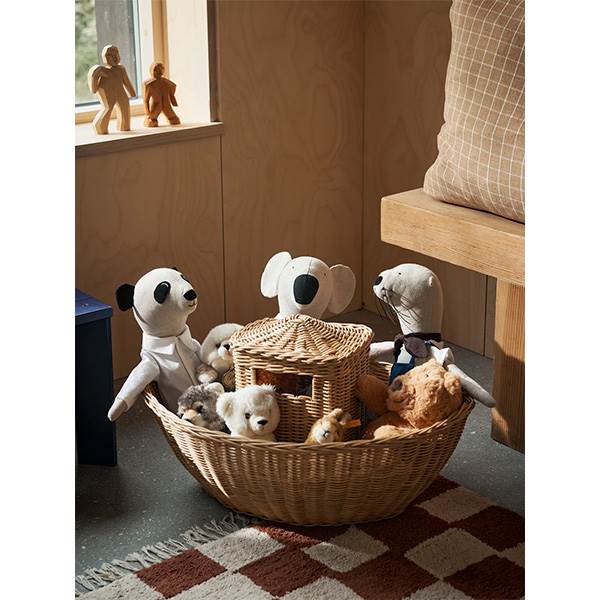 Braided Ark forener funktionel opbevaring og leg på elegant vis. Denne alsidige indretningsgenstand er fremstillet af flettet naturlig rattan og fungerer både som en inspirerende legekammerat og som en praktisk opbevaringsløsning, der bidrager til orden i rummet. De generøse dimensioner samt det aftagelige låg giver mulighed for opbevaring af bamser og legetøj, samtidig med at arken fremstår som et dekorativt og charmerende element i børneværelset.