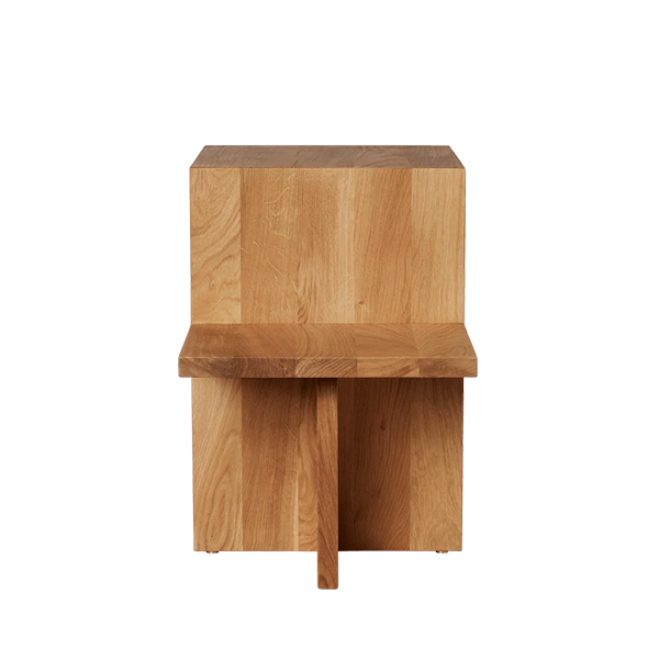 Distinct Sidebord – Skulpturelt sidebord i massivt egetræ Distinct Sidebord fra Ferm Living kombinerer minimalistisk, arkitektonisk design med varme og naturlig tekstur. Bordet er fremstillet i FSC®-certificeret massivt olieret eg, hvilket sikrer både holdbarhed og et bæredygtigt valg. Med sine mål B: 35 x H: 50 x D: 60 cm og en vægt på 9 kg er det let at placere i alle hjemmets rum. Sidebordet bevarer den skulpturelle og rene form fra Distinct-serien, men med træets naturlige varme, der giver et blødere og mere indbydende udtryk. Det er både funktionelt og dekorativt og kan bruges på mange måder: som aflægningsbord ved siden af sofaen eller lænestolen, som pynt med planter eller dekorationer, eller som et stilfuldt element i ethvert hjørne af hjemmet. Highlights: Fremstillet i FSC®-certificeret massivt olieret eg Skulpturelt, minimalistisk og tidløst design Praktisk og dekorativt med flere funktioner Tørres let af med en tør klud Kan bruges i stuen, soveværelset, entreen eller kontoret Et sidebord, der kombinerer funktionalitet og æstetik, og som passer perfekt ind i moderne og klassiske indretninger.