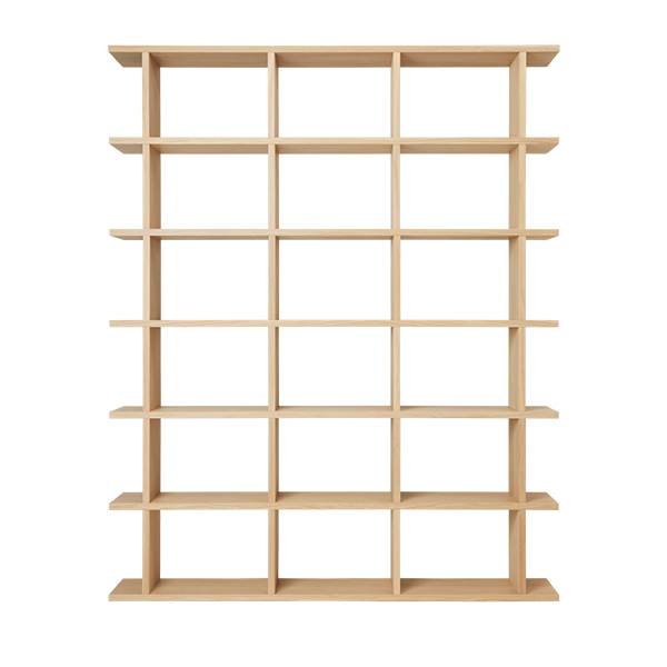 Kona bogreolen er bygget op omkring tre søjler og seks åbne hylder, der giver rigelig plads til bøger, dekorative genstande, opbevaringskasser eller hverdagsnips. Den enkle og åbne konstruktion gør det let at style reolen efter behov – uanset om du foretrækker et minimalistisk eller mere personligt udtryk.