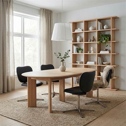 Bogreolen er fremstillet i FSC® Mix-certificeret egetræsfiner med en MDP‑kerne, hvilket gør den til et bæredygtigt valg, samtidig med at den bevarer et naturligt og tidløst udtryk. Du kan vælge mellem Natural Oak og Dark Stained Oak, som begge fremhæver træets varme og struktur.