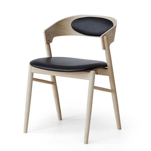 Stolen her er udformet i egetræ med sæde i læder.