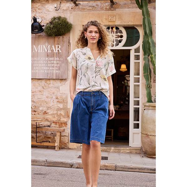 Frariana kortærmet skjorte med lige pasform, diskret tekstur, elegant V-halsudskæring og fast kant. Bluse er designet med en rummelig pasform. Det bløde og behagelige materiale sikrer optimal komfort og gør blusen ideel til både afslappede fritidsaktiviteter og en stilfuld arbejdsdag.