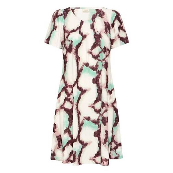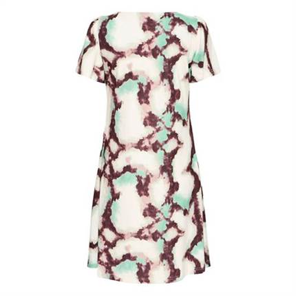 A-formet kjole med løs pasform, korte ærmer og rund halsudskæring. Kjolen har et blødt og let fald, som bidrager til et elegant udtryk. Det markante print, der pryder hele kjolen, tilfører designet en afslappet og stilfuld karakter.