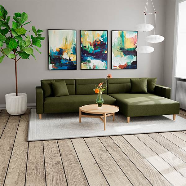 Fyn sofaen med chaiselong er det perfekte valg til dig, der ønsker en kombination af komfort, funktionalitet og et stilrent udtryk. Sofaen er betrukket med et smukt grønt stof, som tilfører varme og karakter til rummet, samtidig med at farven nemt kan kombineres med forskellige indretningsstile. Med sine generøse mål på 295 cm i bredden, 76 cm i højden og en dybde på 160 cm tilbyder sofaen masser af plads til hele familien eller hyggelige stunder med venner.