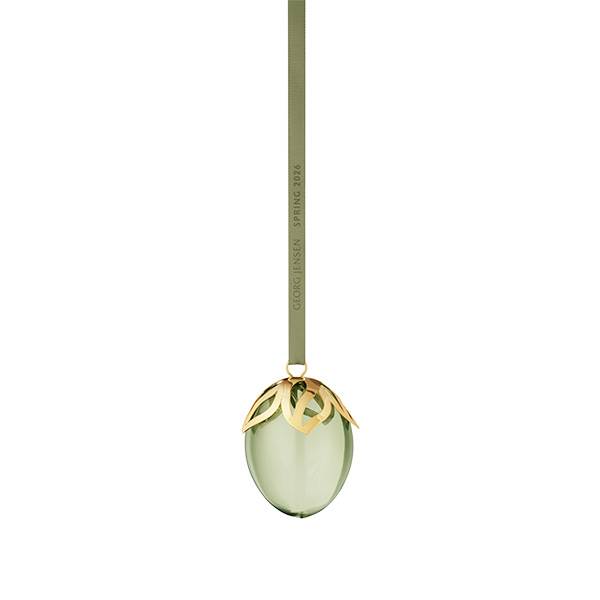 Dette æggeformede glasvedhæng er udformet til at tilføre hjemmet et subtilt forårspræg gennem sine elegante, guldbelagte detaljer, inspireret af årstidens blomster. Det kan anvendes som dekorativt element på grene eller vinduer eller indgå som en raffineret del af en borddekoration. Vedhænget indgår i Georg Jensens årlige forårskollektion, som hylder årstidens blomster og er designet til at indfange glæden ved forårets tilbagevenden.