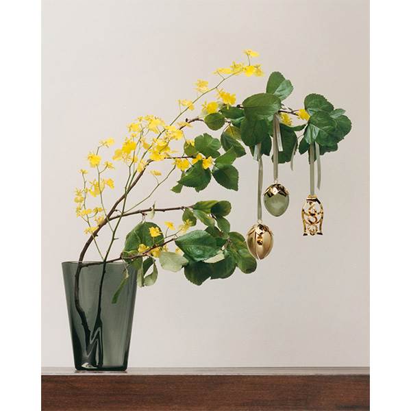 Dette ornament, belagt med 18 karat guld, er ophængt i et satinbånd. Det elegante tulipanformede motiv er inspireret af blomsterdesigns og skitser fra Georg Jensens arkiver. Ornamentet indgår i Georg Jensens årlige forårskollektion, som hylder årstidens blomster og er designet til at indfange glæden ved forårets tilbagevenden.