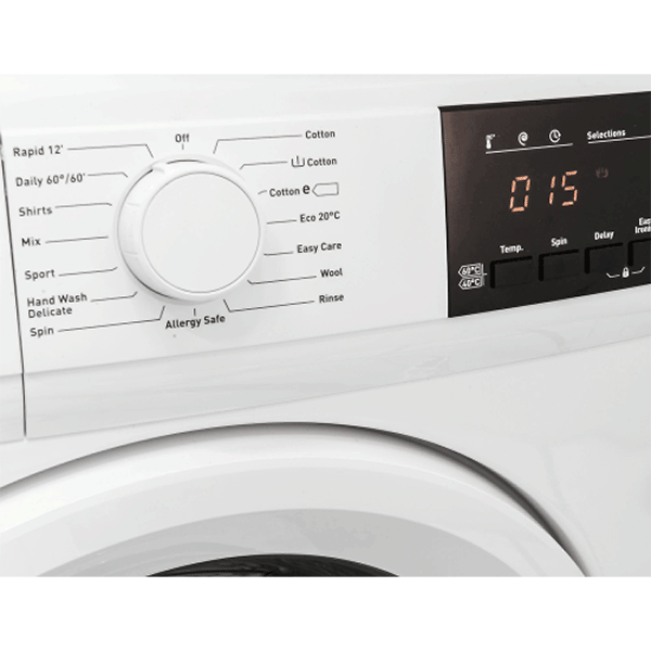 Gram WDE 70714-90/1 er en pålidelig og brugervenlig frontbetjent vaskemaskine med en kapacitet på 7 kg og centrifugering på op til 1400 omdrejninger i minuttet. Maskinen er udviklet til at levere effektiv og skånsom vask – uanset om du har travlt, dyrker sport eller skal vaske sarte tekstiler.
