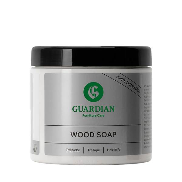 Træsæbe Hvidpigmenteret anvendes til beskyttelse og pleje af ubehandlet eller sæbebehandlet træ hvor der ønskes en hvidpigmenteret overflade – ”White Wash”. Produktet er kogt på palmekerneolie og kokosolie og indeholder hverken parfume, farve, optisk hvidt eller blegemiddel. Træsæben er færdigblandet og klar til brug. Guardian Træsæbe Hvidpigmenteret er testet af Teknologisk Institut og tildelt ”Indeklimamærket”.