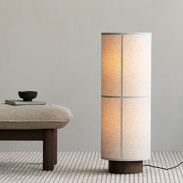 Hashira gulvlampe fra Audo Copenhagen, designet af Norm Arkitekter, er en moderne fortolkning af den klassiske japanske lanterne, hvor den cylindriske silhuet rejser sig majestætisk fra gulvet og tilfører rummet en rolig, skulpturel tilstedeværelse. Lampen er udført i en harmonisk kombination af stål, hør, PS-plast og ask, og den varme farvesammensætning i brun og beige giver et naturligt og organisk udtryk, der passer perfekt ind i hjemmets mange rum. Den gennemskinnelige stofskærm fungerer som en effektiv diffuser, der blødt spreder lyset i flere retninger og skaber en hyggelig, blændfri atmosfære, samtidig med at materialets taktile kvalitet tilfører en følelse af varme og tekstur, som både styrker rummets akustik og visuelle blødhed. Hashira gulvlampen udsender et behageligt 360° lys ved at kaste lyset både opad og nedad, hvilket gør den ideel som stemningsskabende belysning i alt fra stuen til soveværelset eller hjemmekontoret. Hørskærmens naturlige variationer i trådenes tykkelse kan give lyset et let unikt og levende udtryk, der ændrer sig subtilt fra lampe til lampe. Lampen bruger to E27-lyskilder (maks. 40W, pærer medfølger ikke) og er skabt til at levere en varm, ikke-invasiv belysning, der bidrager til en afslappet og atmosfærisk indretning.