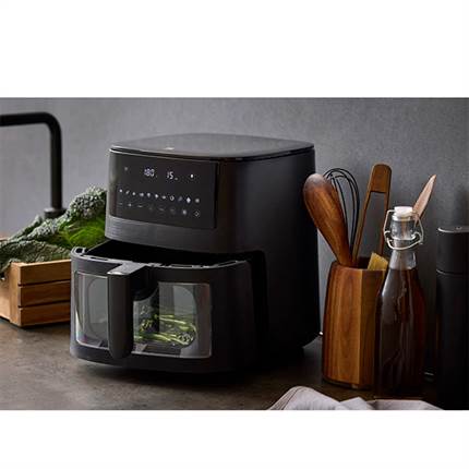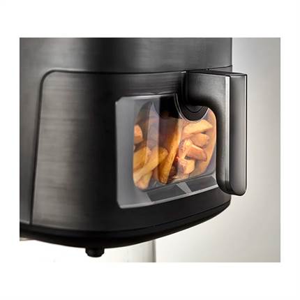 Airfryer med en kapacitet på 6,5 liter og en effekt på 1650 watt, udstyret med vindue i skuffen, der giver mulighed for at følge tilberedningsprocessen under brug. Apparatet har 11 forudindstillede programmer, temperaturindstilling fra 40 til 200 °C samt timer-, holde-varm-, forsinkelses- og rystefunktion.