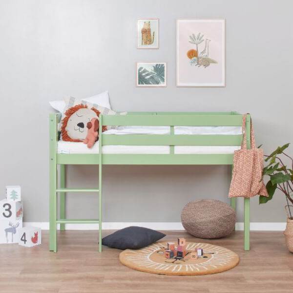 Den halvhøje seng fra ECO Comfort i 70x160 cm fra Hoppekids er en lille og praktisk seng, som giver mulighed for, at man kan lave hyggelige huler under sengen, eller få mere plads til opbevaring. Den skønne Pale Green farve giver sengen et unikt udtryk. Der findes masser af tilbehør til sengen, såsom madrasser, tekstiler og opbevaringsmuligheder. ECO Comfort halvhøj seng er svanemærket. Svanemærket er jeres garanti for, at produktet overholder alle EU-standarder inden for børnemøbler og er testet på disse. Samtidig tages der størst mulige hensyn til miljøet både ved indkøb af råvarer, under selve produktionen, i produktets liv og når produktet skal bortskaffes. Overfladen er behandlet med vandbaseret lak, fri for unødige kemikalier og skadelige stoffer.