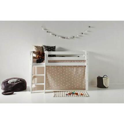 Forhænget skaber også en hyggelig hule under den halvhøje seng, som er perfekt til leg eller når dit barn har brug for en lille pause fra resten af verden. Vi har ikke tal på, hvor mange bøger der dagligt bliver læst i sengehulerne, men vi tør godt sige at det er ret mange.