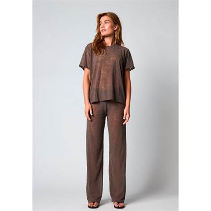 Transparent bluse fra Hype The Detail i brunlige nuancer, prydet med et elegant og floralt meshmønster.