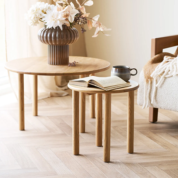 Jena sofabordet er et elegant og tidløst møbel i naturlig eg, der tilfører varme og lethed til indretningen. Med sine harmoniske mål på 70 x 70 cm og en højde på 40 cm passer bordet perfekt ind i både mindre og større stuer, hvor det fungerer som et stilrent samlingspunkt foran sofaen. Den lyse naturfarvede eg giver bordet et klassisk, nordisk udtryk, mens den solide trækonstruktion tilføjer stabilitet og holdbarhed, uden at møblet virker tungt – vægten er kun 7,5 kg, hvilket gør det nemt at flytte rundt efter behov. Jena sofabordet leveres adskilt og er enkelt at samle, hvilket gør det praktisk både ved modtagelse og placering i hjemmet. Et smukt, funktionelt og minimalistisk sofabord, der nemt kan kombineres med mange forskellige sofaer og indretningsstile.