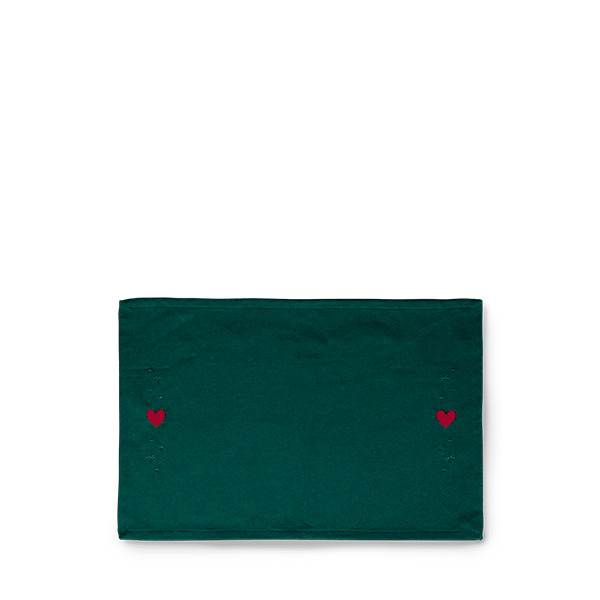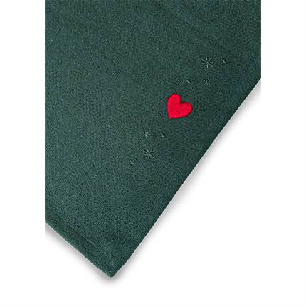 Denne elegante JUNA Christmas Fable-dækkeserviet i dyb julegrøn er udsmykket med to broderede motiver af seriens karakteristiske hjerter, omgivet af fine små julestjerner, der fremhæves langs dækkeserviettens kanter. Dekorationerne forbliver synlige, selv når dækkeservietten anvendes med tallerkener og bestik.