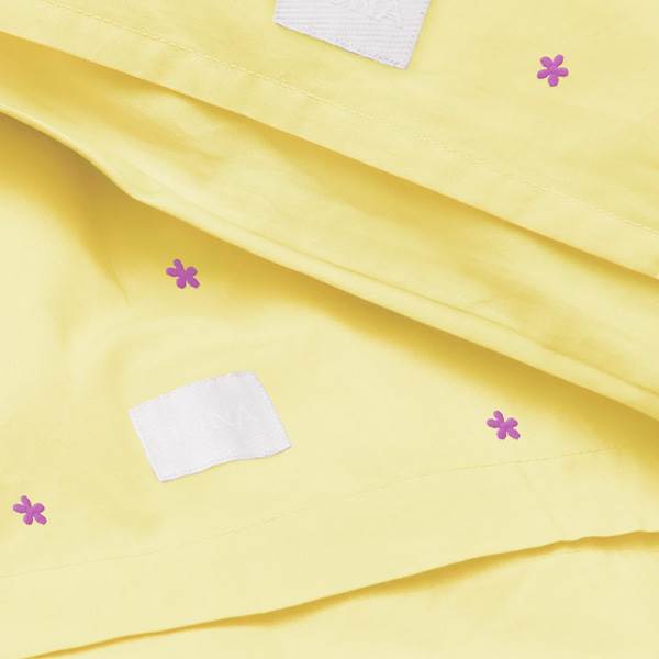 Daisy-sengesættet fra JUNA repræsenterer en nyfortolkning af det klassiske blomsterprint. Designet er kendetegnet ved en broderet blomst i kontrastfarve, der på elegant vis forenes med JUNAs enkle og tidssvarende formsprog.