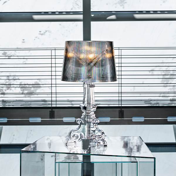 Bourgie lampen er en bordlampe fra Kartell. Denne model er med lysdæmper. Den egner sig på et skrivebord, stuebord eller som et stykke kunst i hjemmet. Det er en lampe som vækker opsigt hvor end den står.