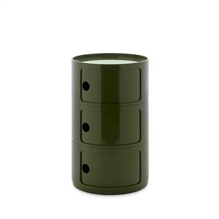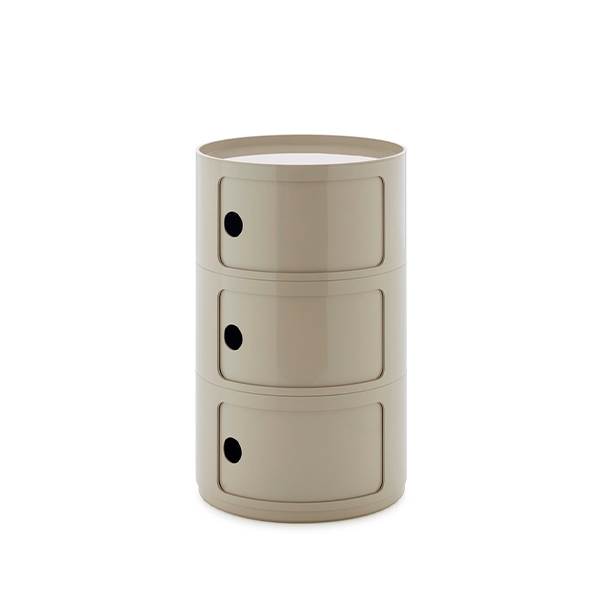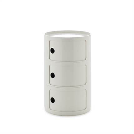 Med en diameter på 42 cm og en højde på 69,5 cm tilbyder Componibili New Big god opbevaringsplads uden at virke dominerende i rummet. De integrerede rum gør det nemt at organisere hverdagens småting, hvad enten det er bøger, accessories eller personlige ejendele. Den runde form giver møblet et blødt og indbydende udtryk, som let kombineres med andre møbler.